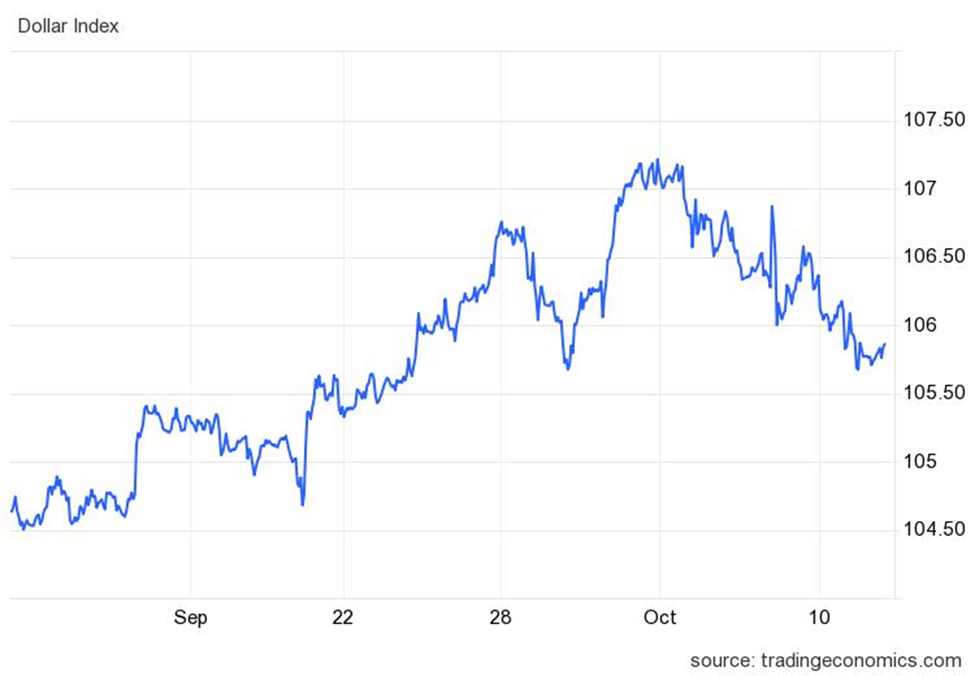 Chỉ số USD đã chứng kiến một đợt giảm giá sau khi chạm đỉnh mới trong năm khi gần đạt mức 107,30 vào ngày 3 tháng 10 và di chuyển xuống khu vực 105,70 vào thứ Tư, ghi nhận mức thấp hàng tháng mới.
