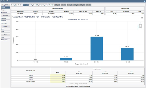 Thị trường tiếp tục định giá gần 70% khả năng Fed có thể bắt đầu nới lỏng lãi suất vào tháng 6, theo CME FedWatch Tool.