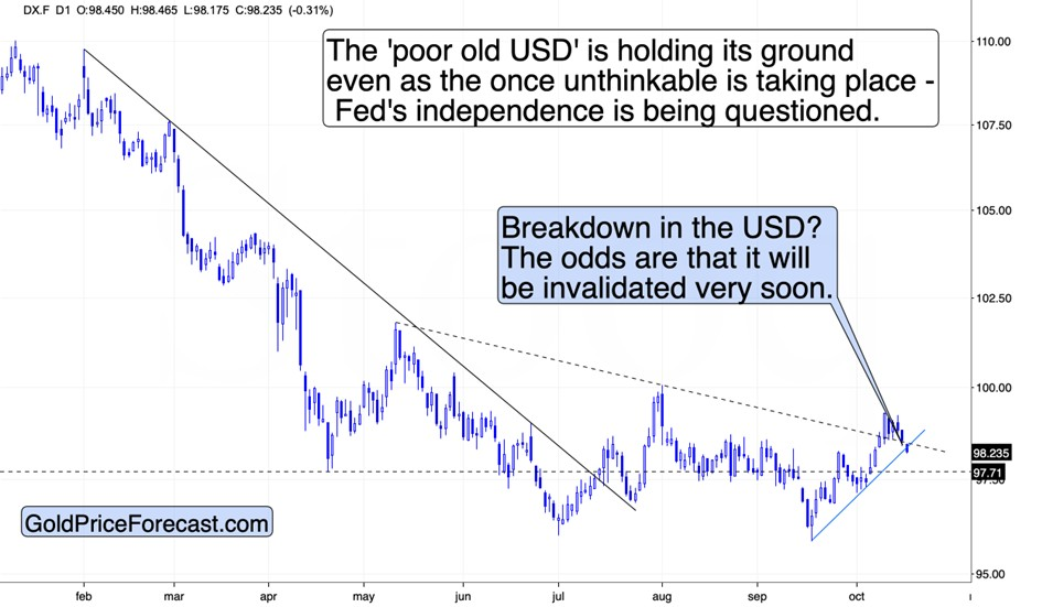 Nếu USD ổn định hoặc bật tăng trở lại – đặc biệt tại vùng giao cắt của các đường hỗ trợ kỹ thuật (dự kiến trong 1–2 ngày tới) – đây có thể là tín hiệu kích hoạt làn sóng bán tháo trên thị trường kim loại quý.