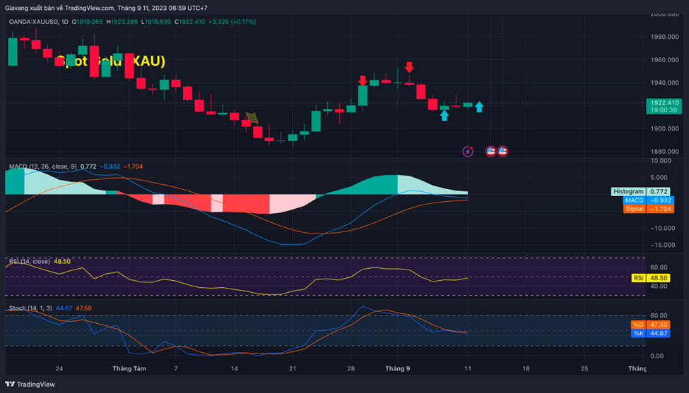 - Nếu giá vàng giảm xuống dưới mức 1.920 USD (SMA 200 ngày) và bắt đầu sử dụng mức đó làm mức kháng cự, thì 1.900 USD (mức tâm lý) và 1.890 USD (mức thoái lui Fibonacci 38,2%) có thể được xem là mục tiêu giảm giá tiếp theo.