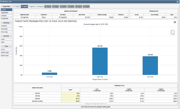 Theo công cụ Fedwatch CME, thị trường đặt cược khoảng hơn 60% Fed hạ lãi suất trong tháng 9.
