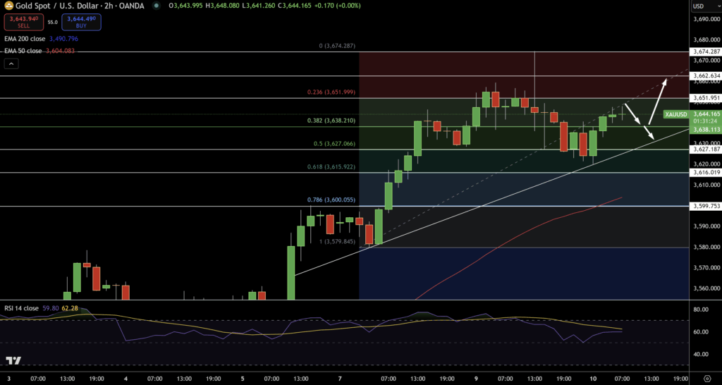 👉 Nếu vượt $3652, vàng có thể hướng tới $3674.