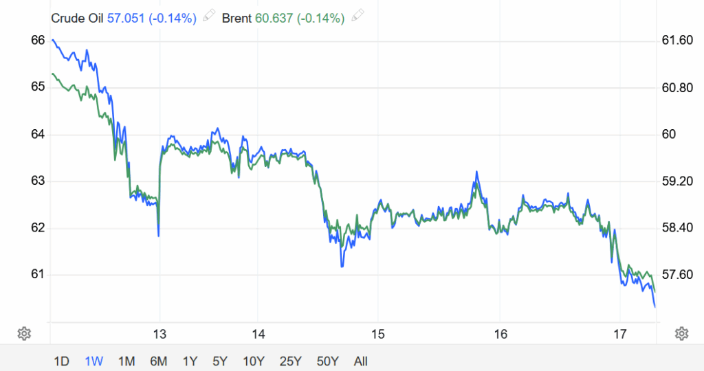Bank of America cho biết giá dầu Brent có thể giảm xuống dưới múc 50 USD/thùng nếu căng thẳng thương mại Mỹ – Trung leo thang, trong khi sản lượng của OPEC+ tăng lên.