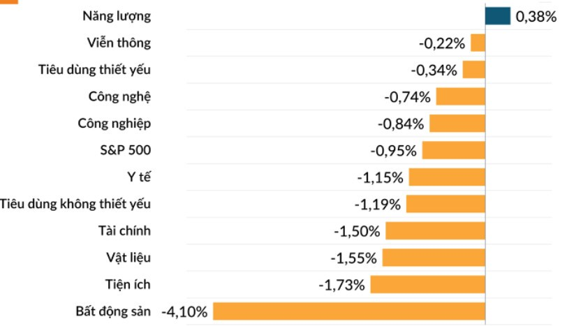 Trên S&P 500, chỉ duy nhất nhóm Năng lượng tăng do giá dầu khởi sắc.