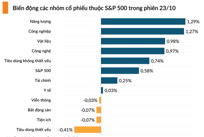 Đóng cửa phiên giao dịch thứ Năm ngày 23/10, chỉ số S&P 500 tiến 0,58% lên 6.738,44 điểm.