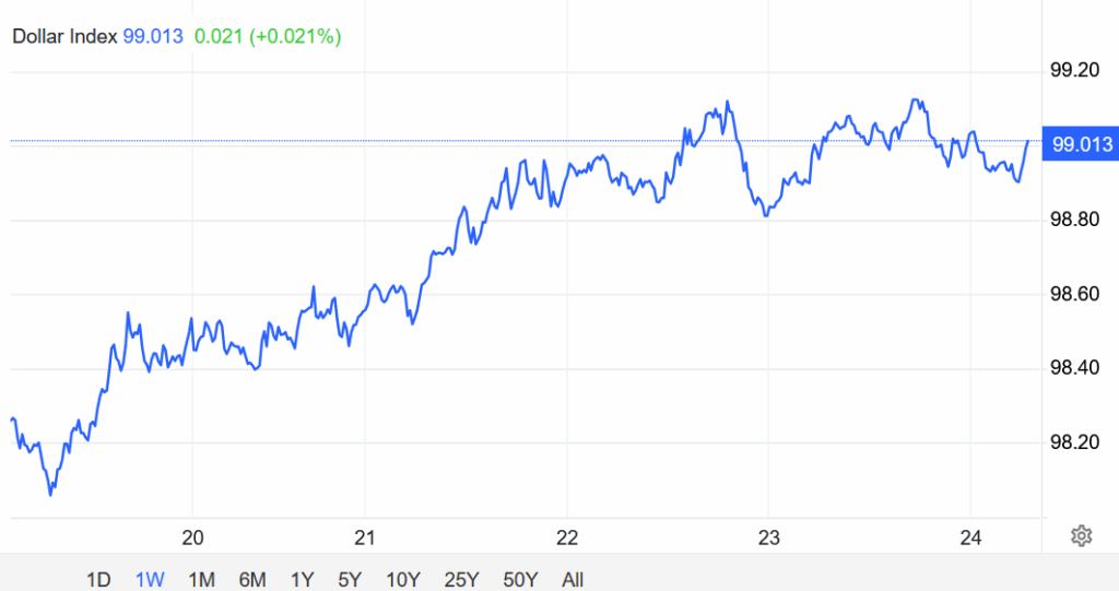 Chỉ số đô la Mỹ DXY tăng nhẹ lên trên mức 99 vào ngày thứ Năm, lấy lại phần nào khoản lỗ của phiên trước đó khi các nhà đầu tư hướng sự chú ý tới báo cáo lạm phát tháng 9 dự kiến công bố vào thứ Sáu, được kỳ vọng sẽ cung cấp thêm thông tin về tình hình kinh tế trong bối cảnh thiếu dữ liệu do tình trạng tê liệt của chính phủ.