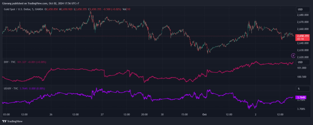 Dữ liệu do Cục Thống kê Lao động Hoa Kỳ công bố vào Thứ Ba cho thấy Số lượng việc làm của JOLTS đã tăng lên 8,04 triệu vào tháng 8 từ mức 7,71 triệu vào tháng 7. Tuy nhiên, Chỉ số PMI Sản xuất của ISM giữ nguyên ở mức 47,2 vào tháng 9, không đạt kỳ vọng của thị trường là 47,5 và cho thấy sự suy giảm đang diễn ra trong hoạt động kinh doanh của lĩnh vực sản xuất. Sau các bản công bố dữ liệu này, các chỉ số chính của Phố Wall đã giảm xuống và tâm lí né tránh rủi ro đã giúp USD vượt trội hơn các đối thủ cạnh tranh của mình.