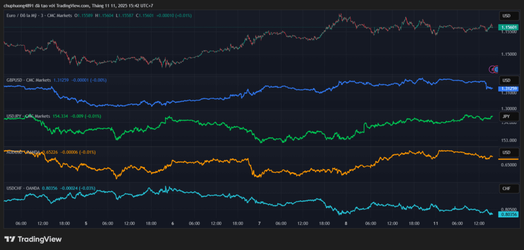 Thị trường tài chính toàn cầu ngày 11/11 ghi nhận nhiều biến động mạnh sau khi Thượng viện Mỹ thông qua dự luật mở cửa trở lại chính phủ, tạo cú hích lớn cho tâm lý rủi ro và đồng USD. Dự luật sẽ được chuyển sang Hạ viện để bỏ phiếu trong tuần này và dự kiến sẽ khôi phục việc công bố các dữ liệu kinh tế bị trì hoãn thời gian qua.