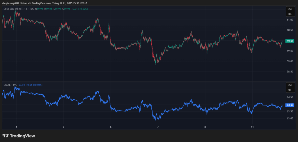 Thị trường năng lượng vẫn loay hoay trong biên độ hẹp. Dầu WTI quanh vùng 60 USD/thùng và dầu Brent gần mức 64 USD/thùng.