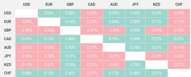 Bảng dưới đây cho thấy tỷ lệ phần trăm thay đổi của Đô la Mỹ (USD) so với các loại tiền tệ chính được niêm yết trong tuần này. Đô la Mỹ mạnh nhất so với Yên Nhật.