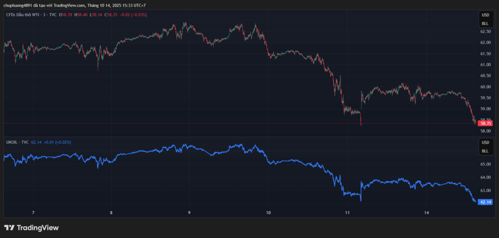 Thị trường năng lượng tiếp tục rơi về mức thấp mới nhiều tuần khi mà triển vọng nhu cầu quá yếu. Dầu WTI quanh mức 58,4 USD/thùng và dầu Brent quanh mốc 62 USD/thùng.