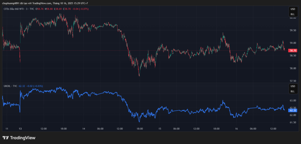 Thị trường năng lượng tiếp hồi phục nhẹ từ đáy 5 tháng – triển vọng vẫn khá tiêu cực. Dầu WTI quanh mức 58,8 USD/thùng và dầu Brent quanh mốc 62,4 USD/thùng.