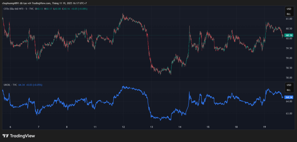 Giá dầu thô chưa thể bứt phá ra khỏi vùng hiện tại vì nhu cầu toàn cầu chưa thể khởi sắc. Giá dầu WTI hiện giữ mốc 60USD/thùng còn dầu Brent chưa đạt mốc 64USD/thùng.