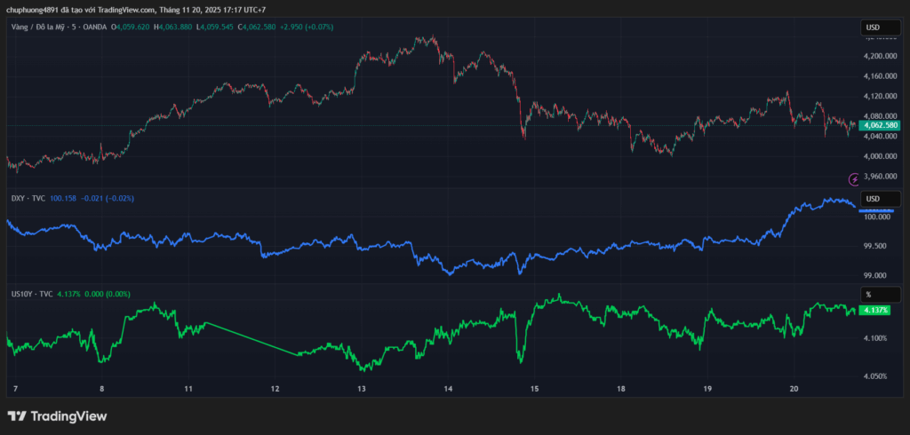 Giá vàng giảm sau khi vượt vùng $4100 đêm qua.