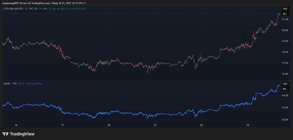 Giá dầu thô tăng mạnh sau khi Mỹ công bố lệnh trừng phạt đối với hai tập đoàn dầu khí lớn của Nga, làm dấy lên lo ngại về nguồn cung toàn cầu. Động thái này khiến giá dầu tăng trên diện rộng, trong khi tâm lý rủi ro của nhà đầu tư sụt giảm.