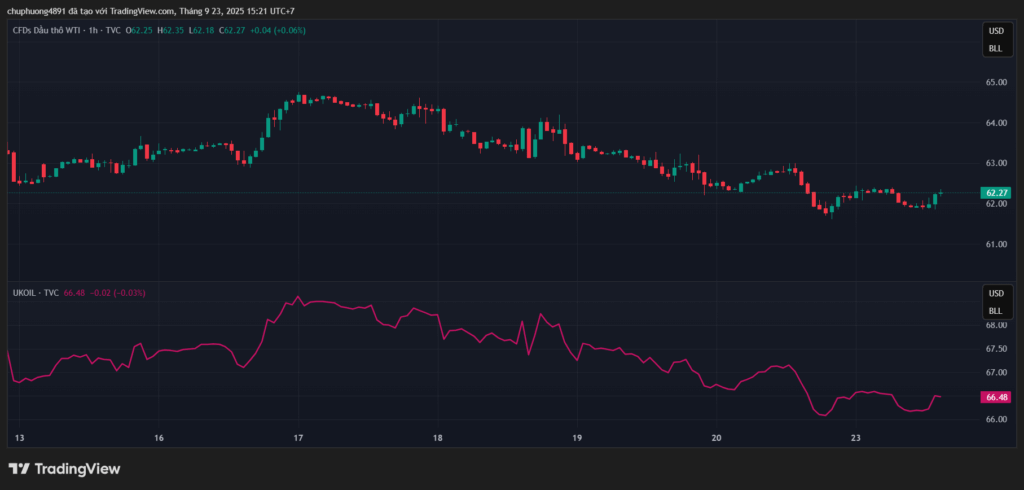 Giá dầu hồi phục nhẹ sau áp lực điều chỉnh. WTI tiến lên mốc 62,25USD còn dầu Brent quanh vùng 66,46USD.