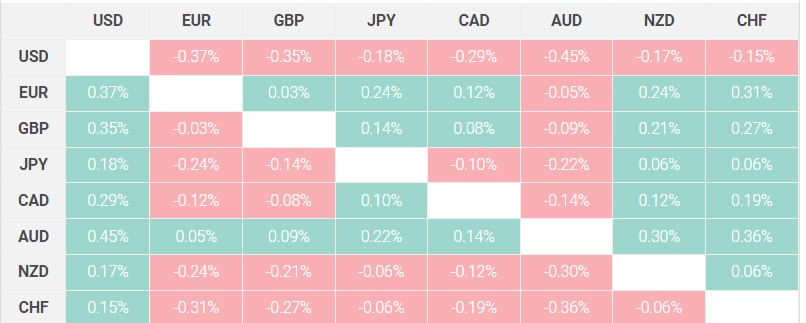 Bảng dưới đây cho thấy tỷ lệ phần trăm thay đổi của Đô la Mỹ (USD) so với các loại tiền tệ chính được niêm yết trong tuần này. Đô la Mỹ yếu nhất so với Đô la Úc.