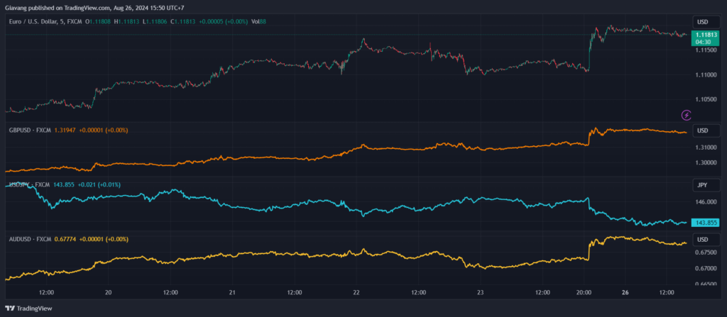 Cuối tuần trước, Đồng USD chịu áp lực bán mạnh sau khi Chủ tịch Cục Dự trữ Liên bang (Fed) Jerome Powell đưa ra những bình luận ôn hòa về chính sách tiền tệ. Ông Powell cho biết đã đến lúc chính sách tiền tệ phải điều chỉnh khi phát biểu khai mạc tại Hội nghị kinh tế Jackson Hole thường niên. Ông nói thêm rằng: “Chúng tôi sẽ làm mọi thứ có thể để hỗ trợ thị trường lao động mạnh mẽ khi chúng tôi đạt được tiến triển hơn nữa hướng tới sự ổn định giá cả”. Chỉ số USD đã giảm 0,8% vào thứ Sáu và mất 1,7% trong tuần, trong khi Lợi suất trái phiếu kho bạc Mỹ kỳ hạn 10 năm chuẩn giảm gần 1,5% sau bài phát biểu của Powell.