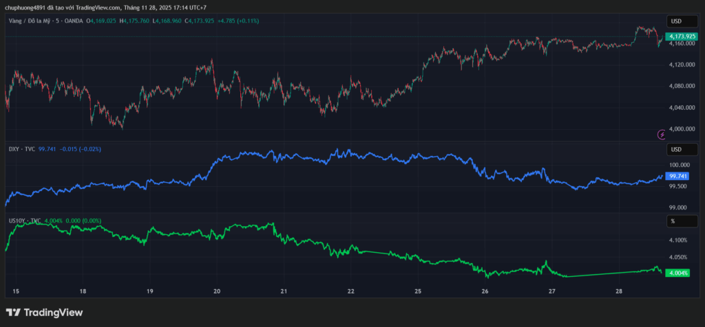 Giá vàng rung lắc mạnh dưới vùng $4200 khi USD hạ nhiệt.