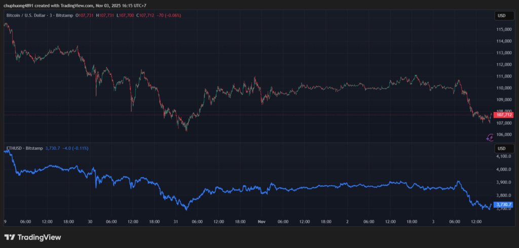 Thị trường tiền kĩ thuật số khởi động tuần mới khá tiêu cực. BTC/USD lùi về 107.000. ETH/USD neo ổn định dưới 3800.