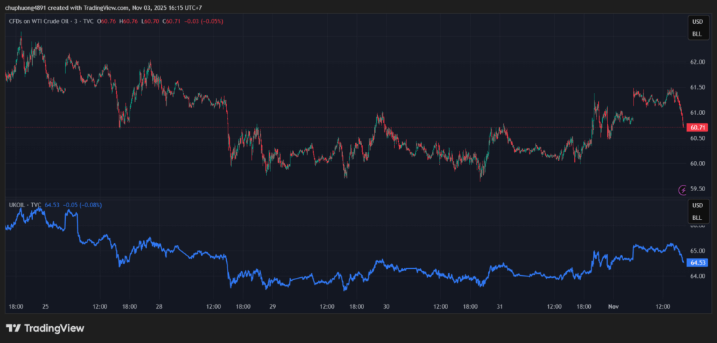Thị trường năng lượng mất đà tăng đầu phiên Á. Dầu WTI giảm về quanh mốc 60 USD/thùng và dầu Brent lùi về 64,5 USD/thùng.