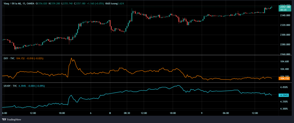 Thị trường vàng đã thoái lui sau khi chạm mức cao nhất mọi thời đại mới trên $2350 vào thứ Hai nhưng vẫn đóng phiên trong sắc xanh. Vàng (XAU/USD) tiếp tục tăng và vượt mốc $2355 – lên đỉnh kỉ lục mới trong phiên Âu 9/4.