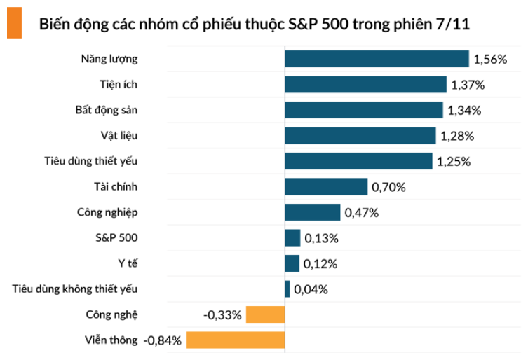 Bảng điện tử S&P 500 chứng kiến sắc xanh của 9/11 nhóm ngành, dẫn đầu là Năng lượng.