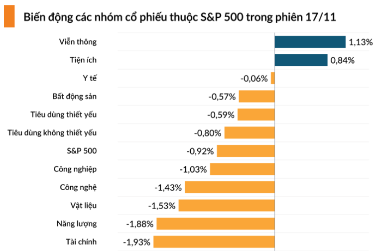 Cổ phiếu Nvidia giảm gần 2% trước khi công ty công bố kết quả kinh doanh quý 3/2025. Cổ phiếu Blue Owl Capital, một công ty cho vay tín dụng tư nhân, đã sụt gần 6% trong bối cảnh lo ngại về hoạt động cho vay ồ ạt liên quan đến việc xây dụng trung tâm dữ liệu AI.