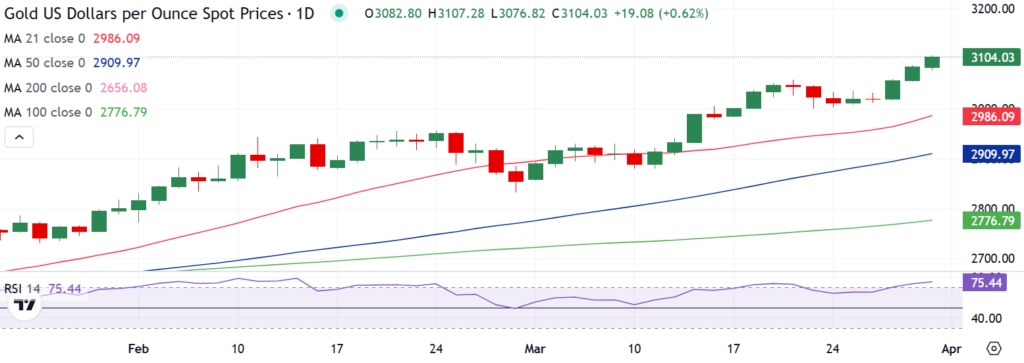 Tuy nhiên, vẫn chưa biết liệu giá vàng có thể duy trì xu hướng tăng đang diễn ra hay không vì các nhà giao dịch có thể sẽ chốt lời trước thông báo áp thuế của Trump vào ngày 2 tháng 4.