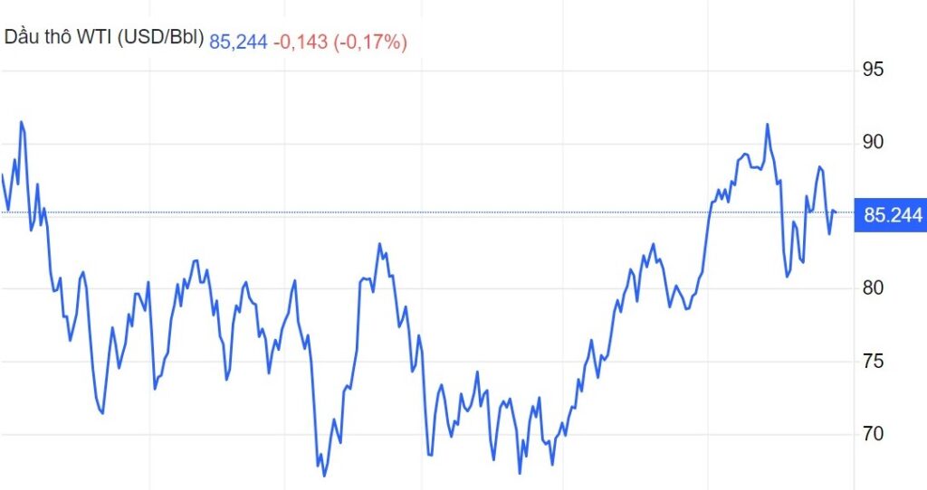 Giá dầu thô WTI tương lai giữ quanh mức 85 USD/thùng vào thứ Năm sau khi tăng gần 2% trong phiên trước đó, do các nhà đầu tư tiếp tục theo dõi diễn biến địa chính trị ở Trung Đông trong bối cảnh lo ngại rằng chiến tranh Israel-Hamas có thể leo thang và làm gián đoạn nguồn cung ở khu vực giàu dầu mỏ này.