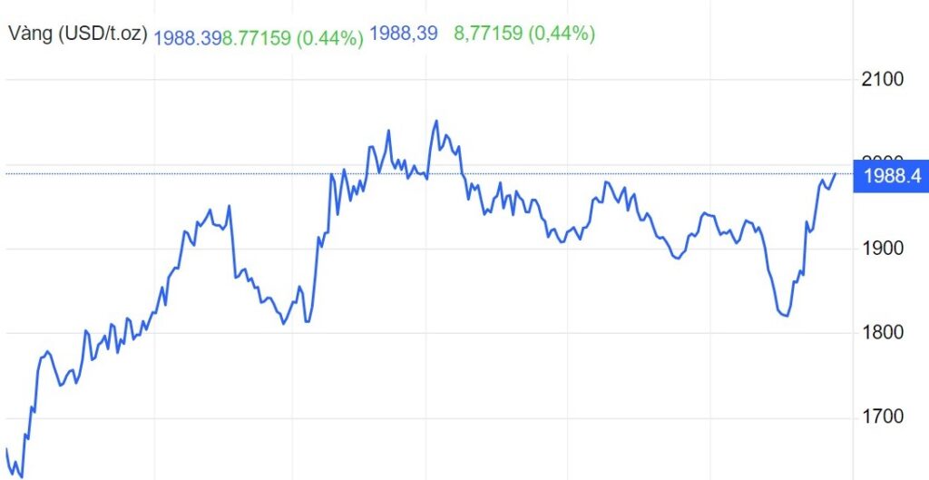Vàng đã tăng trên $1980/oz vào thứ Năm, tiến tới mức cao nhất trong 5 tháng do những bất ổn địa chính trị ở Trung Đông đã thúc đẩy nhu cầu trú ẩn an toàn đối với kim loại này.
