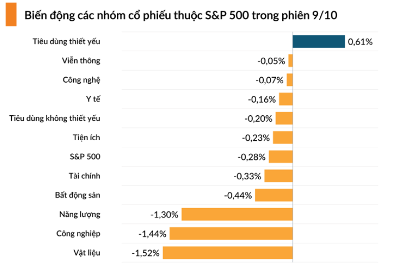 Đóng cửa phiên giao dịch thứ Năm ngày 9/10, chỉ số S&P 500 lùi 0,28% xuống 6.735,11 điểm.