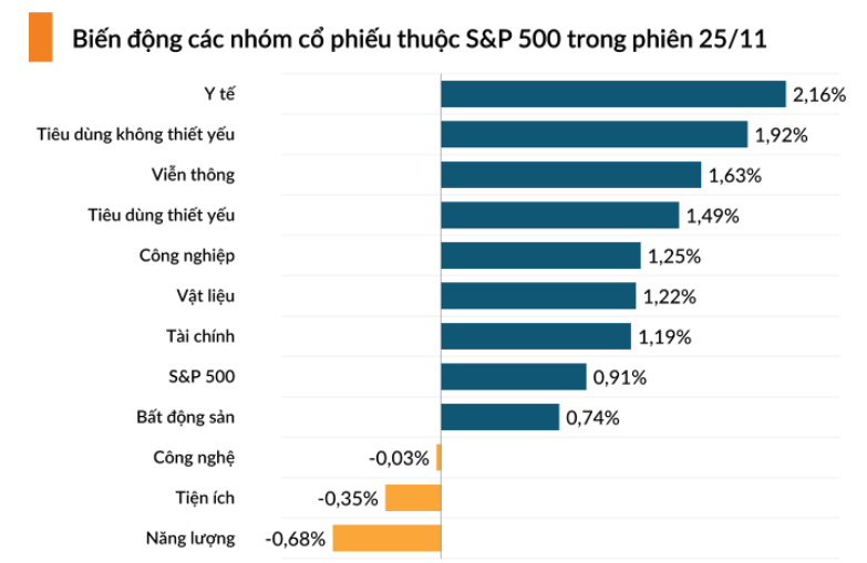 Bảng điện tử S&P 500 ghi nhận đà tăng cực sốc của cổ phiếu Y tế – Tiêu dùng không thiết yếu.