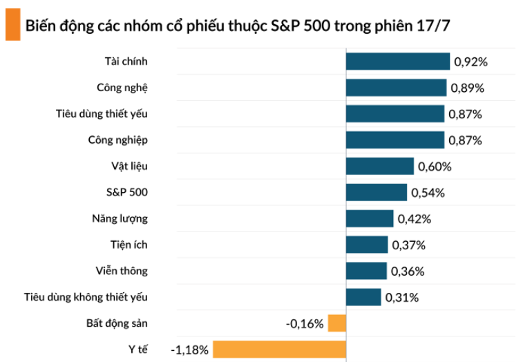 Đóng cửa phiên giao dịch thứ Năm ngày 17/7, chỉ số S&P 500 tiến 0,54% lên 6.297,36 điểm, mức đóng cửa cao kỷ lục thứ 9 trong năm nay.