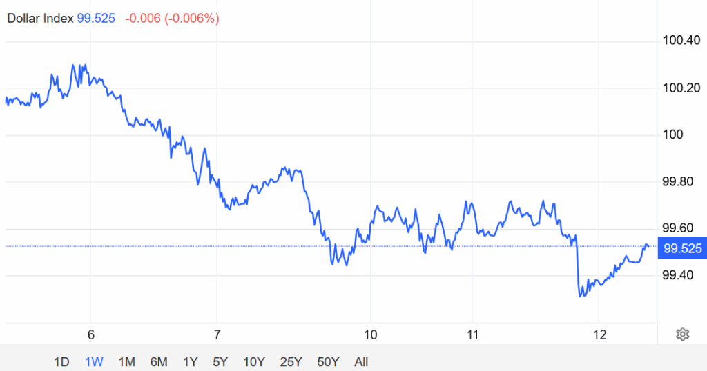 Chỉ số đô la Mỹ DXY giảm xuống khoảng 99,4 vào ngày thứ Ba khi các tín hiệu yếu hơn từ thị trường lao động Mỹ và khả năng Cục Dự trữ Liên bang (Fed) nới lỏng chính sách gia tăng đã làm giảm nhu cầu đối với đồng bạc xanh.