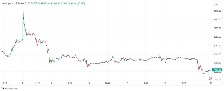 Phillip Streible, giám đốc chiến lược thị trường tại Blue Line Futures, cho biết ông kỳ vọng sẽ thấy một số áp lực giảm giá đối với vàng. Ông nói thêm rằng sau báo cáo việc làm hôm thứ Sáu, khó có khả năng Chủ tịch Cục Dự trữ Liên bang Jerome Powell sẽ thay đổi quan điểm diều hâu của mình, ngay cả khi ngân hàng trung ương dự kiến ​​sẽ giữ nguyên lãi suất.