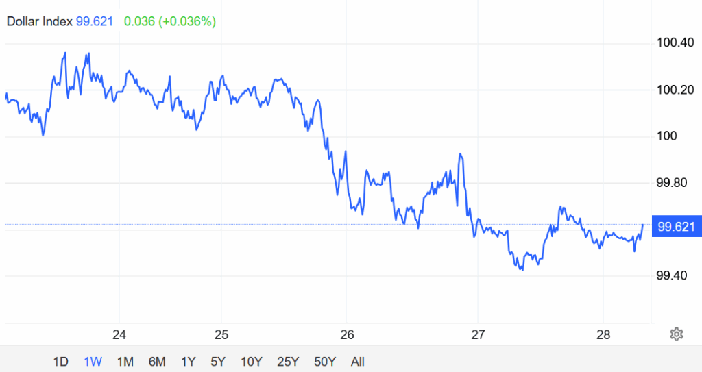 Chỉ số DXY giảm xuống dưới 99,5 vào thứ Năm, đánh dấu phiên giảm thứ tư liên tiếp và chạm mức thấp nhất trong gần hai tuần, chịu áp lực từ kỳ vọng ngày càng tăng về việc Cục Dự trữ Liên bang sẽ tiếp tục cắt giảm lãi suất. Thị trường hiện định giá khoảng 85% khả năng Fed sẽ hạ lãi suất 25 điểm cơ bản vào tháng 12, tăng mạnh so với mức khoảng 30% một tuần trước. Ba lần cắt giảm khác cũng đang được tính đến trước cuối năm 2026.