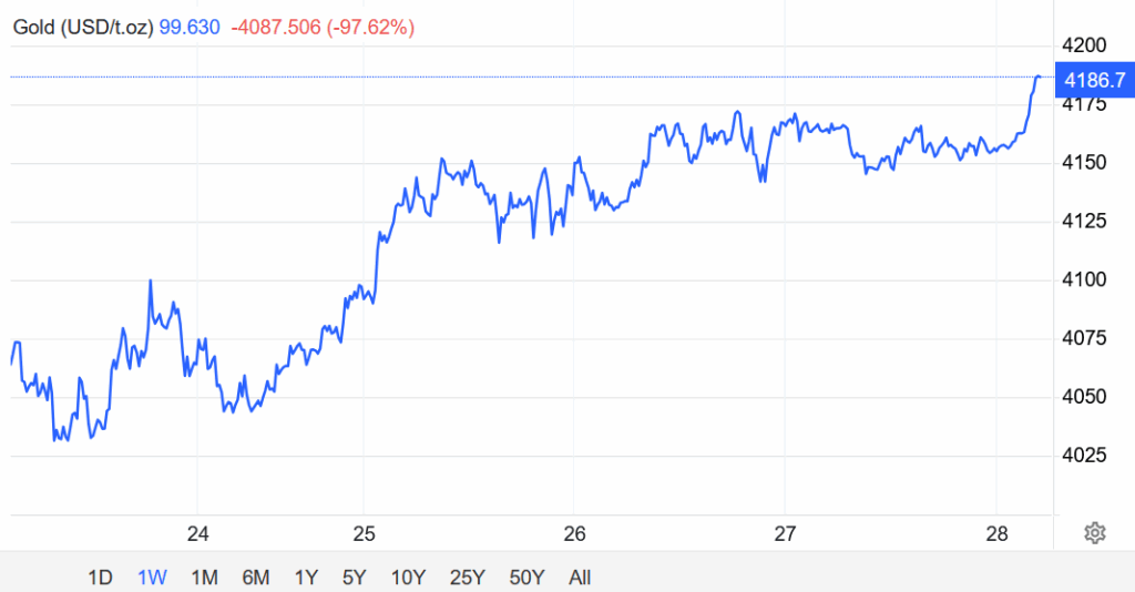 Kết thúc phiên giao dịch ngày 27/11, hợp đồng vàng giao ngay lùi 0,2% xuống $4156,89/oz.
