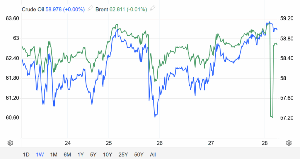 Kết thúc phiên giao dịch ngày 27/11, hợp đồng dầu Brent tiến 21 xu (tương đương 0,2%) lên 63,34 USD/thùng.
