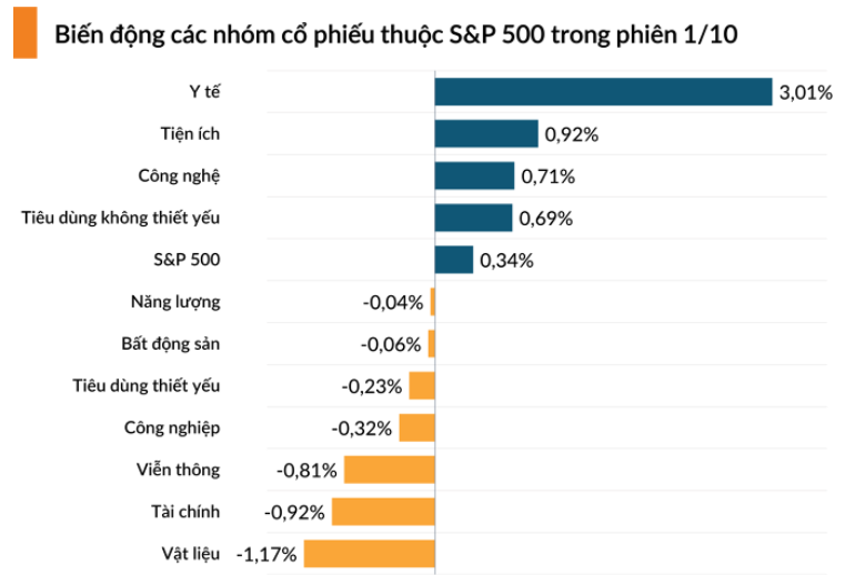 Bảng điện tử S&P 500 ghi nhận sắc xanh của 4/11 nhóm ngành. Cổ phiếu Y tế tiếp đà tăng rất mạnh.