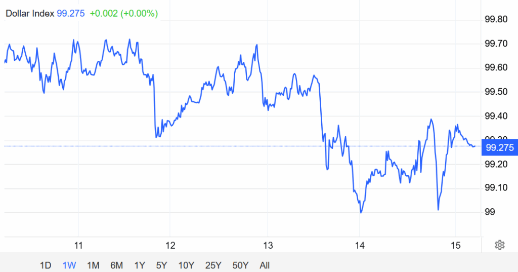 Chỉ số đô la Mỹ DXY ban đầu giảm xuống 99 vào ngày thứ Sáu — mức thấp nhất trong tháng — trước khi hồi phục lên 99,3 khi các nhà giao dịch tiếp tục đánh giá lại triển vọng kinh tế Mỹ trong lúc chờ lịch công bố mới cho các dữ liệu kinh tế bị trì hoãn. Một số báo cáo có thể sẽ sớm được công bố, trong khi một số khác có thể sẽ không bao giờ được phát hành.