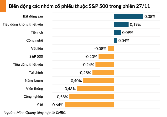 Kết thúc phiên giao dịch ngày thứ Hai, Dow Jones giảm 56,68 điểm, tương ứng 0,16%) còn 35.333,47 điểm. S&P 500 giảm 0,2% xuống 4.550,43 điểm. Nasdaq Composite giảm nhẹ 0,07% còn 14.241,02 điểm.