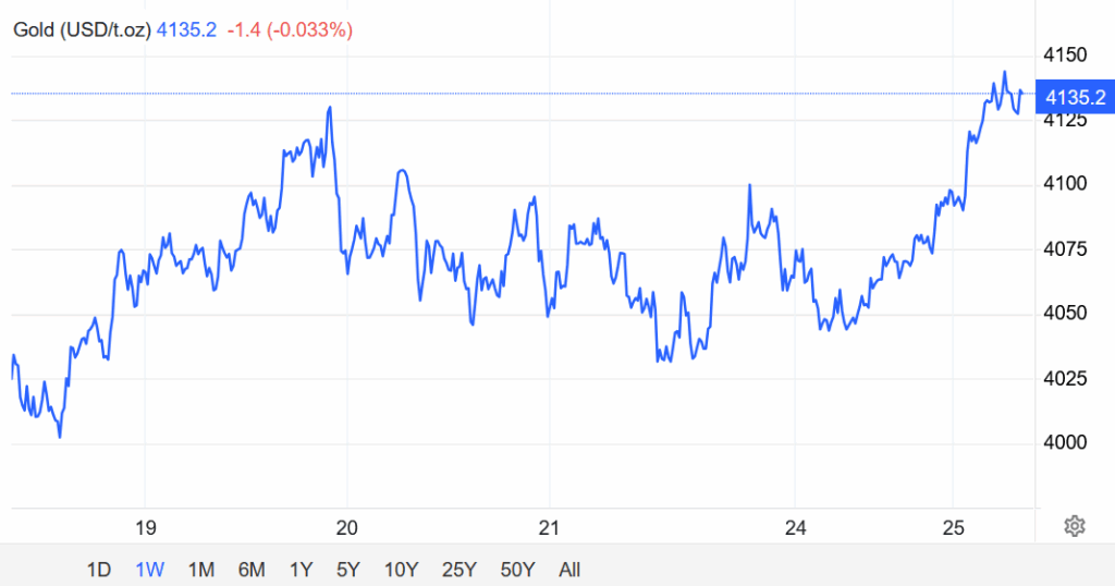 Giá vàng tăng khá mạnh, phá mốc $4100