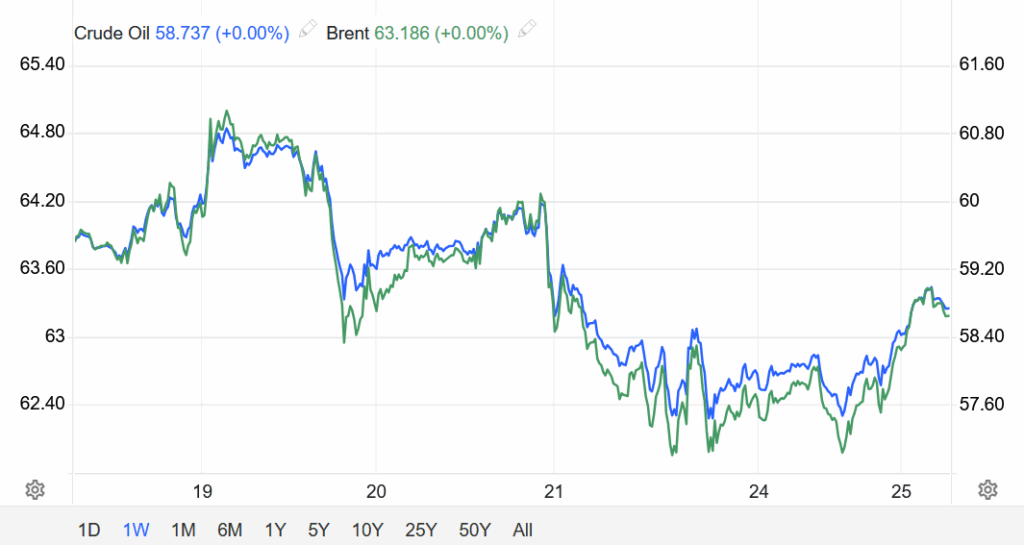 Hợp đồng dầu WTI cộng 78 xu (tương đương 1.34%) lên 58.84 USD/thùng.