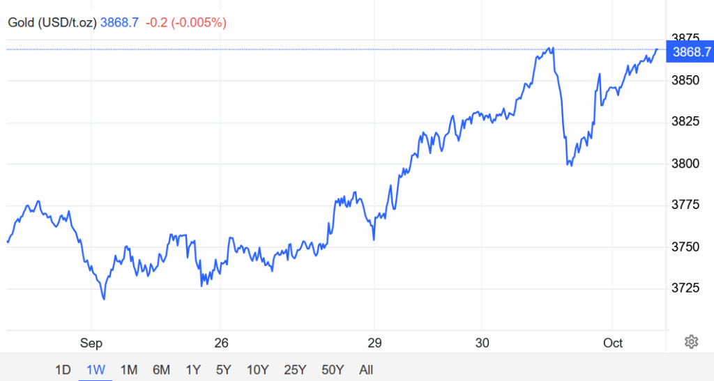 Thị trường kết thúc quý III khá tích cực với Vàng – chứng khoán khi nhà đầu tư tiếp tục đổ tiền vào đẩy giá lên. Trước nguy cơ chính phủ Mỹ phải đóng cửa, nhà đầu tư có thể vẫn theo dõi vàng – tài sản trú ẩn.